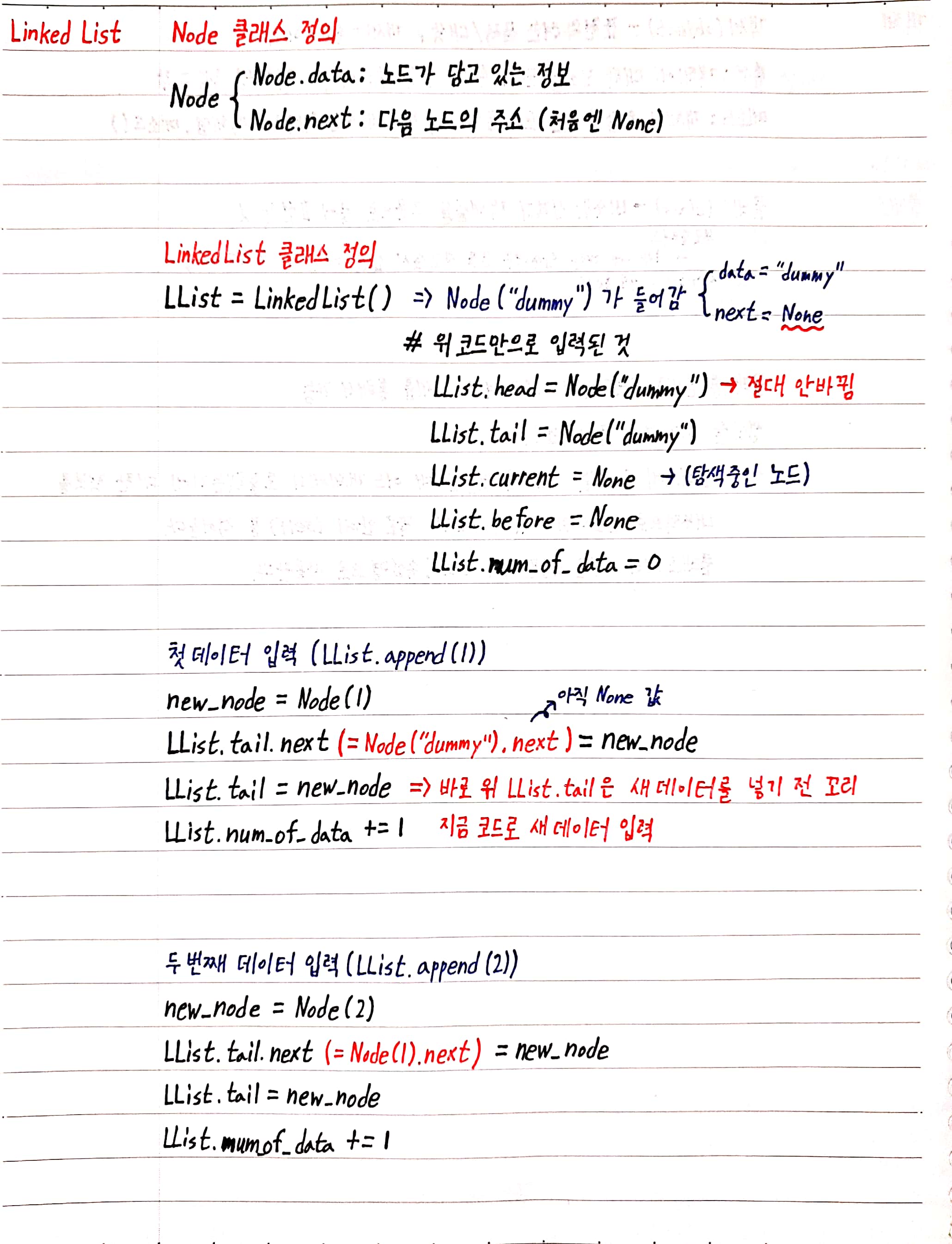 # LList = ["dummy", 1, 2, 3, 4] 와 같은 모습을 상상하면 된다.